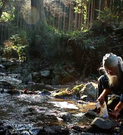 Akeji était un peintre japonais, qui vivait reculé avec sa femme Asako dans une cabane de la vallée d’Himuro et créait dans un dialogue constant avec le vivant qui les entourait. Pauline Marion-Mataillet, qui a organisé et animé Zone de test, nous a expliqué que pour cet artiste chaque saison avait une fonction créative : le printemps apporte l’inspiration, l’été est le temps de la fabrication des pigments, l’automne et l’hiver sont les moments précieux de la création.